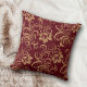 This image features a pretty antique gold floral swirl pattern over a maroon red background. Both sides of the pillow have the same image. Elegant, with a bit of an art nouveau style.