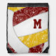 This cute volleyball themed drawstring backpack features the realistic image of an abstractly oversized volleyball that has maroon, gold and white panels and a doodle pattern of paislies, flowers and feathers in white covering the volleyball's maroon and gold panels - customize with her monogram or jersey number - by katz_d_zynes