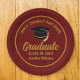 This modern maroon and gold custom graduation party paper plate features classy typography of your high school or college name for the class of 2026. Customize with your graduating year under the chic handwritten script and black grad cap for great personalized graduate decor.