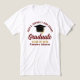 These modern maroon and gold script custom senior graduate tri-blend t-shirts feature your high school or college name for the class of 2026. Customize with your graduating year under the chic handwritten script and black grad cap for a great personalized graduation party tee for seniors.