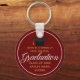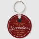 This chic red and gold custom senior graduation keychain features classy white typography under a high school or college name for the class of 2026. Customize with your graduating year under the elegant calligraphy for a great personalized graduate key chain gift.