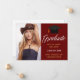 An elegant custom photograph graduation announcement in beautiful maroon and gold for a high school, college, or university from the class of 2026. Customize with your school name and graduating class under the lovely calligraphy for an elegant personalized burgundy red graduate photo card with your senior portrait.