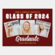 This trendy maroon and gold custom senior senior portrait photo collage graduation yard sign features white varsity letters for the Class of 2025 under your college or high school name. Customize with your favorite 3 graduate photographs and personalize the back with commencement details.