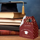This burgundy red and gold custom senior graduation party favor box features chic white and gold typography under a high school or college name for the class of 2024. Customize with your graduating year under the lovely congratulations calligraphy for a great personalized graduate ceremony decoration. Classy polka dots decorate the sides.