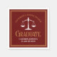 This chic maroon and gold custom law school graduation party paper napkin features classy typography for a class of 2024 graduate. Customize with your graduating year under the white scales of justice for this great personalized lawyer or attorney gift of congratulations.