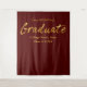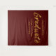Modern, simple and minimalist congratulations graduate welcome banner, photo wall backdrop. Designed with trendy gold handwritten brush script typography on maroon background to match school, college or university colors. Customize school or college details and class year.
