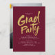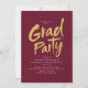 Maroon Gold Simple Modern Brush Script Grad Party Invitation