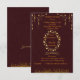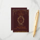 Provide guests with important event information using this elegant maroon and gold wedding details card. Designed with a rich burgundy background and refined gold accents, this luxurious enclosure complements formal and traditional wedding themes. Perfect for sharing ceremony details, reception plans, accommodations, and travel information, this customizable template completes a coordinated wedding stationery suite.