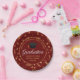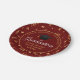 These elegant maroon custom senior graduation party plates features classy white typography under a high school or college grad cap for the class of 2025. Customize with your graduating year and senior graduate name under the chic calligraphy. Gold streamers decorate the border.