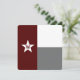 This flat card design is a modern twist on the iconic Texas state flag, featuring bold color blocks in maroon, white, and gray in a layout that nods to the Lone Star State. The prominent white star with a customizable initial adds a personal touch while reinforcing the Texas-inspired look. Clean and minimal with a collegiate flair, this card is ideal for school notes, thank-you messages, or personalized stationery.