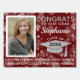 Congrats to our Grad! Fun bokeh bubbles pattern background in your choice of school color. If you don't see your school colors, click "customize further" and make sure to change the front and back background color. Congratulations to the class of (your year). Customize this personalized yard banner sign with your graduate's photo, name, year and school or other custom text. Looks great in your high school or college colors, for girls or boys, as a drive through graduation party award or just to mark the occasion!