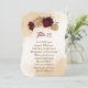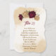 Beautiful fall wedding seating chart card featuring maroon and beige gold flowers with green leaves .