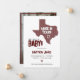 Announcing the latest baby made in Texas! Let everyone know when your little one arrives with this classy announcement in colors for the major Texas schools. Front features space for baby's name and birth details, along with your names. It all sits below a big state shape of Texas filled with a herringbone pattern. Back side for your vertical image. Design available in burnt orange, maroon, purple, green, dark green/gold yellow, orange, and red. Matching products available.
