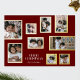Maroon Photo Frames Collage Modern Merry Christmas Foil Holiday Card