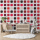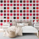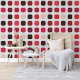 This design features a modern textured geometric motif with black, dark red, maroon, magenta, pink, and beige rounded squares on an ivory white colored backdrop. The pattern is both ornate and elegant, exuding a funky hipster essence. It's a sophisticated and chic design that represents eclectic minimalism, ideal for artistic interior designers, home decor lovers, trendsetters, and aficionados of vintage, retro, or abstract digital geometric patterns. This ornate yet trendy hipster pattern is versatile and offered on a range of contemporary home decor products, suitable for enhancing the atmosphere of various spaces like master bedrooms, kitchens, living rooms, man caves, college dormitories, condominiums, studios, or apartments.
