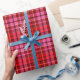 Maroon Red Pink Plaid Tartan Design Wrapping Paper