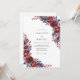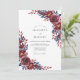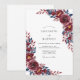This design features deep maroon peonies and lush navy blue leaves for a sophisticated aesthetic. Rich watercolor textures bring a moody and elegant vibe to the artistic arrangement. Perfect for a late season event, the deep jewel tones create a striking contrast. Delicate berries and sprigs of foliage add a touch of nature to the refined botanical elements.