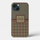 Maroon, Tan And Gray Plaid Monogrammed Case-Mate iPhone Case