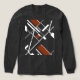 A vividl and artistic crisscross design. An abstract medley of slanted geometric shapes is featured in shades of maroon and white. Pictured here on a "charcoal black" long-sleeved Tri-blend t-shirt, but also available in a number of styles and colors. Inspired by the Mid-century Modern style, this "wearable art" overall look is sleek and artistic, a chic addition for casual, everyday wear (for activities from work/school to sports to relaxing/socializing/running errands around town). Especially for those who work remotely and/or spend a lot of time at home, the shirt contributes to a feeling of being "dressed" and "put together," with a personalized style.