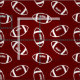 American football fabric with a simple design of the outline of footballs in white against a maroon background.