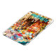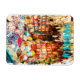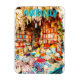 Stylish retro watercolor photo magnet showcasing a market (bazaar) of Marrakech or Marrakesh in Morocco. Works great as a travel souvenir and also gift idea to memorize your vacation in the Maghreb country