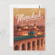 Experience the vibrant spirit of Marrakech with this vintage-style postcard showcasing the city’s bustling souks, ornate palaces, and iconic Koutoubia Mosque. Rich in color and culture, the design captures the exotic charm and timeless allure of Morocco’s red city. Perfect for lovers of North African heritage, vintage travel art, and historic architecture.