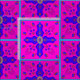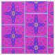 Fabric with Marrakesh Arabesque inspired w/ eggs repeat bright, with ribbon eggs bright art motif elements inspired by the colors and designs of Marrakesh, Morocco, in pink, yellow, bright blue, purple, floral petal medallion, dangling jewels, columns, eggs with a circling ribbon- art by Kristie Hubler.
