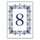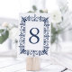 Modern Moroccan inspired table number cards feature a geometric border in navy blue and white surrounding your table number. Design repeats on reverse side. Coordinates with our Marrakesh wedding invitation suite in Navy.