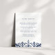 Designed to coordinate with our Moroccan-inspired Marrakesh wedding invitation collection, this simple and chic card features navy blue lettering accented with an intricate navy and white geometric border along the bottom. Replace the sample text with the key details of your wedding celebration.