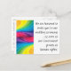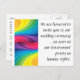 Turning point in history creates perfect opportunity to become a bold activist. Want to encourage your supportive friends and family to advocate with you for marriage equality? On the front, this postcard is designed to express the frustration of same-sex couples who want to become legally married in the U.S., but cannot because of our Government. On the back there is info on how to contact Federal Government officials to demand equal human rights for all U.S. citizens.