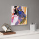 Artist:Joe DeMers | Woman in a purple dress and hat drinking coffee at a table with a man smoking a cigarette