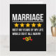 Funny 68th wedding anniversary gift for happily married couples that would give their marriage to their husband or wife a 5 star rating! Perfect for a married couple celebrating 68 years of marriage with a 68th wedding anniversary party! Features 'Marriage - Best 68 Years of My Life. Would Do It All Again!' cute marriage anniversary quote & 5 star rating w/ wedding rings & hearts graphics. Great way for the happily married couple to always remember their 68th wedding anniversary!