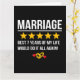 Funny 7th wedding anniversary gift for happily married couples that would give their marriage to their husband or wife a 5 star rating! Perfect for a married couple celebrating 7 years of marriage with a 7th wedding anniversary party! Features 'Marriage - Best 7 Years of My Life. Would Do It All Again!' cute marriage anniversary quote & 5 star rating w/ wedding rings & hearts graphics. Great way for the happily married couple to always remember their 7th wedding anniversary!