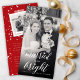 This modern and simple 8"x4" holiday/christmas wedding announcement card features the word 'Married and Bright' in a trendy calligraphy script overlaying a full bleed photo. The back of the card is blank for your own message.