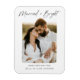 Celebrate your first Christmas as a married couple with our Married and Bright holiday photo magnet! The magnet features "Married & Bright" in a black hand-lettered script. Your wedding photo is displayed with a white rough edge border. Personalize the magnet by adding a custom greeting with your names shown below.
