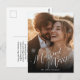 Celebrate your first holiday season as newlyweds with our 'Married and Marry Christmas Photo Postcard '! This elegant and festive design features delicate snowflakes falling around your custom photo, adding a wintery charm to your memories. Personalize it with your favorite wedding or holiday photo, along with your names and the year to create a unique keepsake or thoughtful gift for family and friends. On Back Side of postcard there is Christmas message for Newly Weds. Perfect for spreading holiday cheer while commemorating your first Christmas as a married couple!