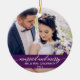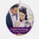 Married and Merry Elegant Calligraphy Script Wedding Photo Purple Ornament with Snowflakes back.