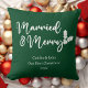 Married and Merry First Christmas Newlywed Green Throw Pillow