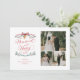 Celebrate your first holiday season as a married couple with this elegant “Married and Merry” photo card. Featuring graceful script lettering and festive watercolor embellishments of pine boughs, holly, golden bells, and a classic bow and three of your favorite wedding photos.