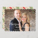 This card is special for the Newlyweds! Replace the photo with your favorite photo of the two of you, using the "personalize this template" button. The card says Married and Merry in script overlay and you insert your names and the year at the bottom. There are some holly leaves and berries in opposite corners that you can keep or delete. The reverse side of the card has a pattern of holly leaves, berries, and red bows that says Merry Christmas in different fonts.