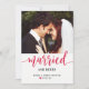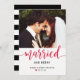 Celebrate your first holiday season as newlyweds with this modern holiday card featuring the phrase “Married and Merry.” Elegant red-script typography overlays your favorite wedding photo for a clean, romantic look. Add your names and wedding date for a meaningful keepsake greeting. The back features a bold black-and-white striped pattern for a chic coordinating finish.