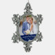 Married and Merry Wedding Calligraphy Blue Snowflake Pewter Christmas Ornament