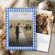 Elegant Rustic Blue Gingham Crest Monogram 2 Photo "Married & Bright" Card.
