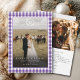 Elegant Rustic Purple Gingham Crest Monogram 2 Photo "Married & Bright" Card.
