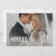 Christmas holiday card featuring the phrase "married and bright" in a modern typography overlay. Your holiday photo is displayed behind. The back of the card is a holiday leaf pattern. Graphics ©LagartixaShop