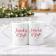 Festive and chic holiday mug set for newlyweds features "married and bright" in red script lettering accented with a snowflake. Personalize with your names and wedding date or year.