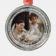 This modern and stylish photo christmas ornament design features multi circle / rings of bright sparkling lights and a full bleed photo with a circle text of the couple's names and wedding date.