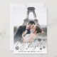 Elegant holiday photo cards for newlyweds feature a favorite vertical or portrait oriented wedding photo with "married & bright" overlaid in black calligraphy script adorned with snowflakes. Personalize with your names or custom greeting beneath. Perfect as a combination Christmas card and thank you card at your first married Christmas, you can add four additional photos to the back, along with a custom pre-printed message of thanks to your guests.