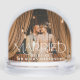 Modern and elegant keepsake wedding photo snow globe design features "Married" in unique white serif type over your wedding photo. Choose to include one or two different photos on the front and back. Personalize the custom "Mr. and Mrs." text with the married last name and wedding date.