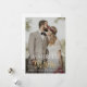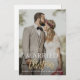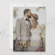 card design with a photo of the bride and groom and elegant gold brush typography. The text and colors can be personalized.